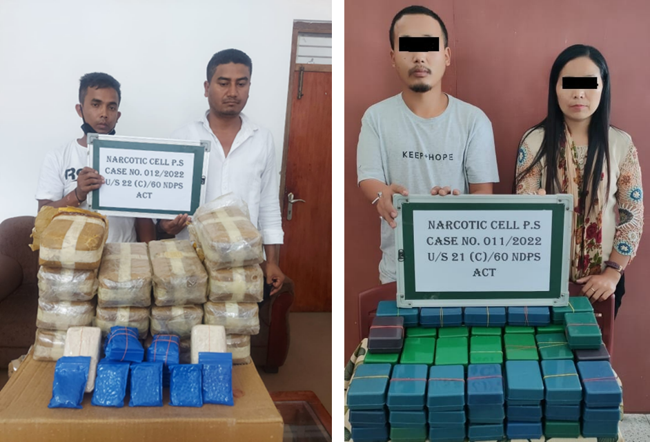 NTN / 15 Sep, 2022Kohima: The Narcotic Cell recovered fifteen packets containing 1.5 lakh suspected Yaba (WY) tablets on 14 September and seventy soap cases containing suspected heroin weighing 840 grams (approximate) on 7 September
