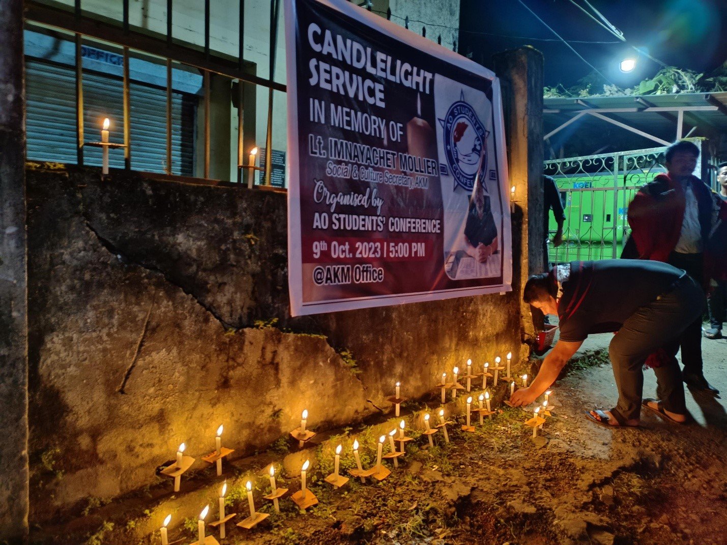 The Ao Students’ Conference (AKM) organized a candlelight service in memory of the late Innayachet Mollier, who served as the Social & Cultural Secretary of AKM, at the AKM Office in Mokokchung. The solemn event paid tribute to a dedicated and beloved figure whose untimely demise left a void in both the Ao community and the broader Naga society.