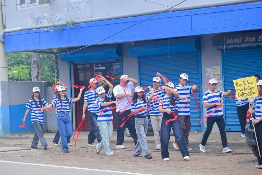 BY NTN / Monday, 8 September, 2025The Red Ribbon Club (RRC) of MGM College Dimapur conducted an intensified Information, Education, and Communication (IEC) Campaign on September 8 across five key locations in the city—Sub-jail Junction, DC Court Junction, Imli Ghas Junction, Notun Basti Junction, and