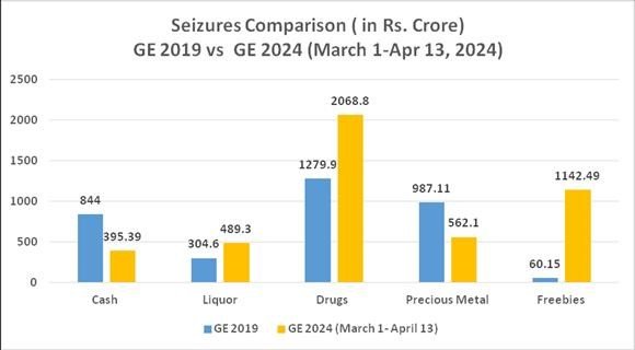 BY 360info / Tuesday, 16 April, 2024With the General Elections 2024 underway, the Election Commission of India (ECI) is on track for the highest ever seizures of inducements recorded in the 75-year history of Lok Sabha elections in the country, informed Press Information Bureau (PIB).