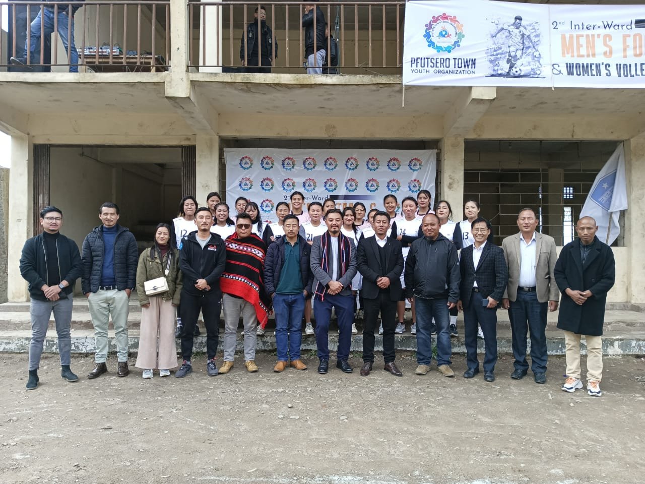 BY NTN / Wednesday, 22 November, 2023Nezosa Tetseo with officials from Pfütsero Town Youth Organization and players of the volleyball final on November 18.