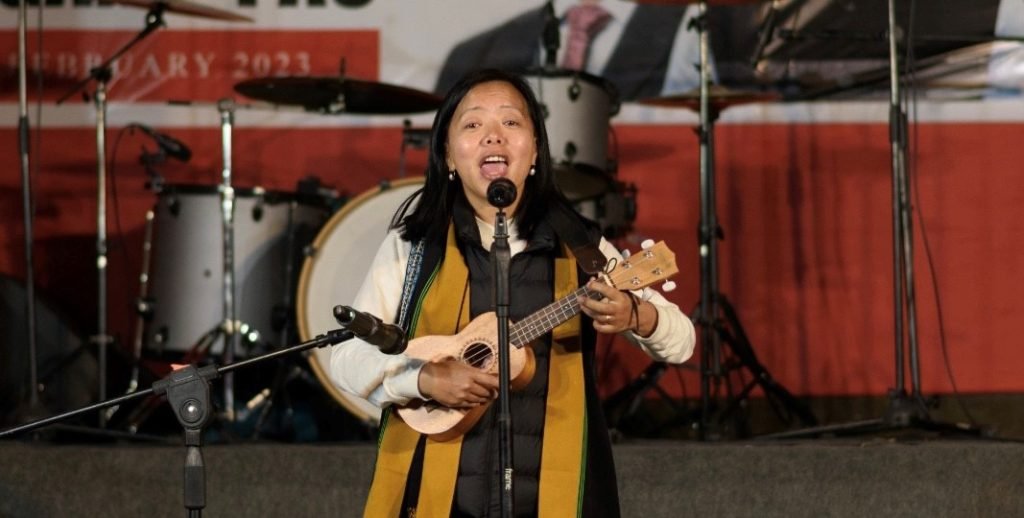Yimyur Yhome, wife of Dr. Kekhrielhoulie Yhome, presenting a song at the rally. (Photo credit: Seyie Suohu)