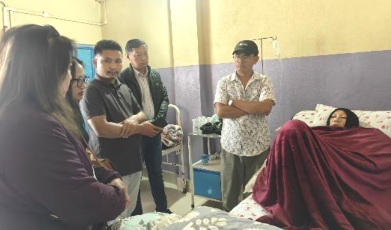 Fact-finding team with the critically injured wife of General Piyong and her son-in-law at Mon District Hospital