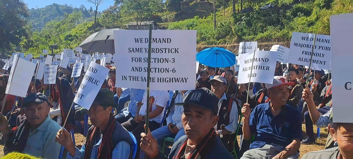 Vitoho Zhimo, Convenor of the Public Forum of Seventeen villages explained that the two lane road project under East-West Corridor road from Showuba to Pangsha which is to connect with the Indo-Myanmar border was supposed to go through Mukalimi village till Zunheboto which covers seventeen villages. He said the National Highways & Infrastructure Development Corporation Limited (NHIDCL) who is undertaking the contract was of the view that the alignment should be taken where there is majority population so, as to facilitate and benefit the people. However, according to Zhimo, the NHIDCL changed the route, focusing only on one village i.e Chishilimi bypassing Khukiye-Lukhai and Satakha town which also overlapped with the existing NH 702 (A).
