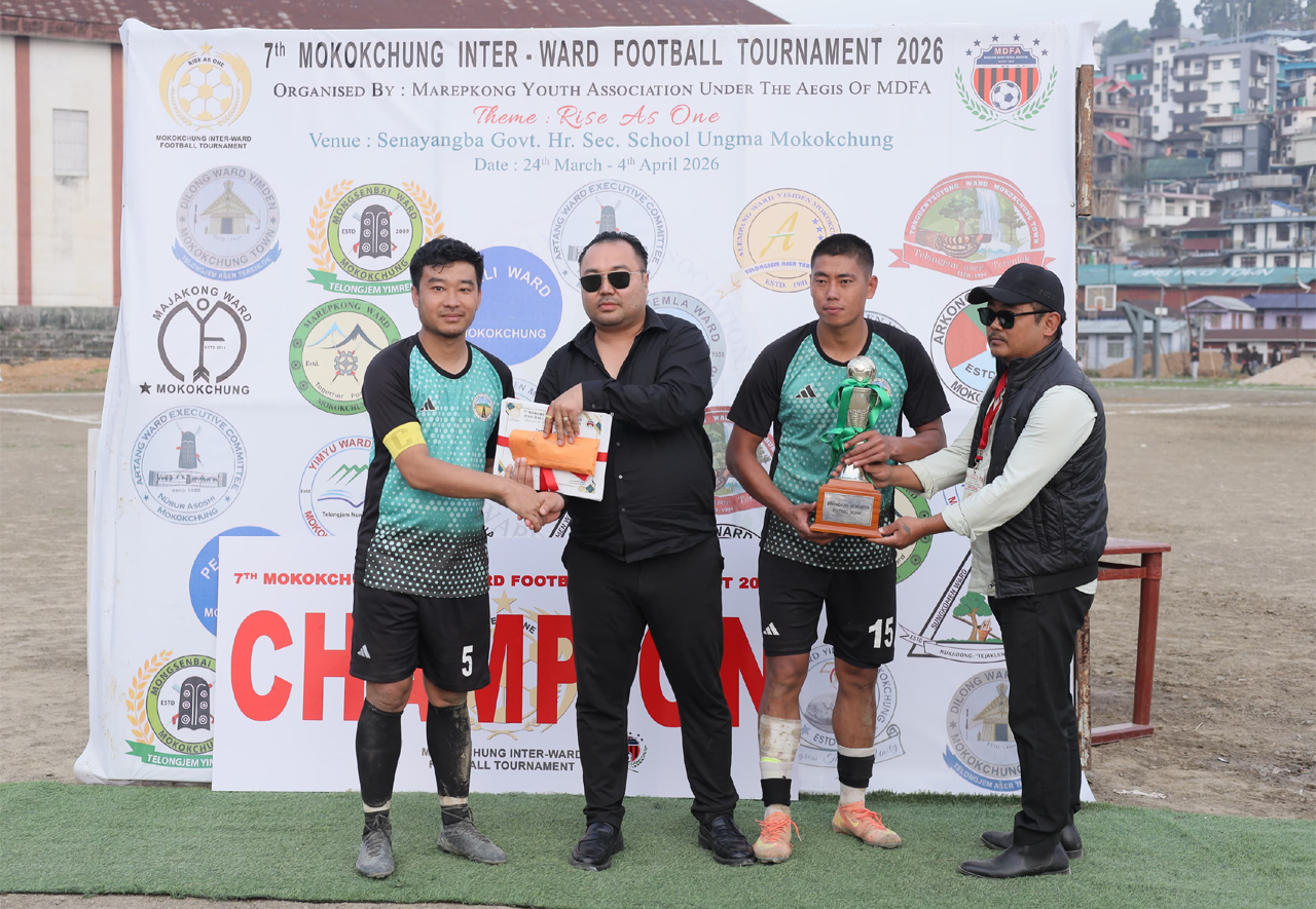 A clinical brace from Imnatoshi (19) led Mongsenbai Ward to a 2–0 victory over Sungkomen Ward in the final of the 7th Mokokchung Inter-Ward Football Tournament (MIWFT) 2026, played at Imkongmeren Sports Complex on April 4. The tournament was organized by Marepkong Youth Association under the aegis of Mokokchung District Football Association (MDFA) on the theme “Rise as One”.