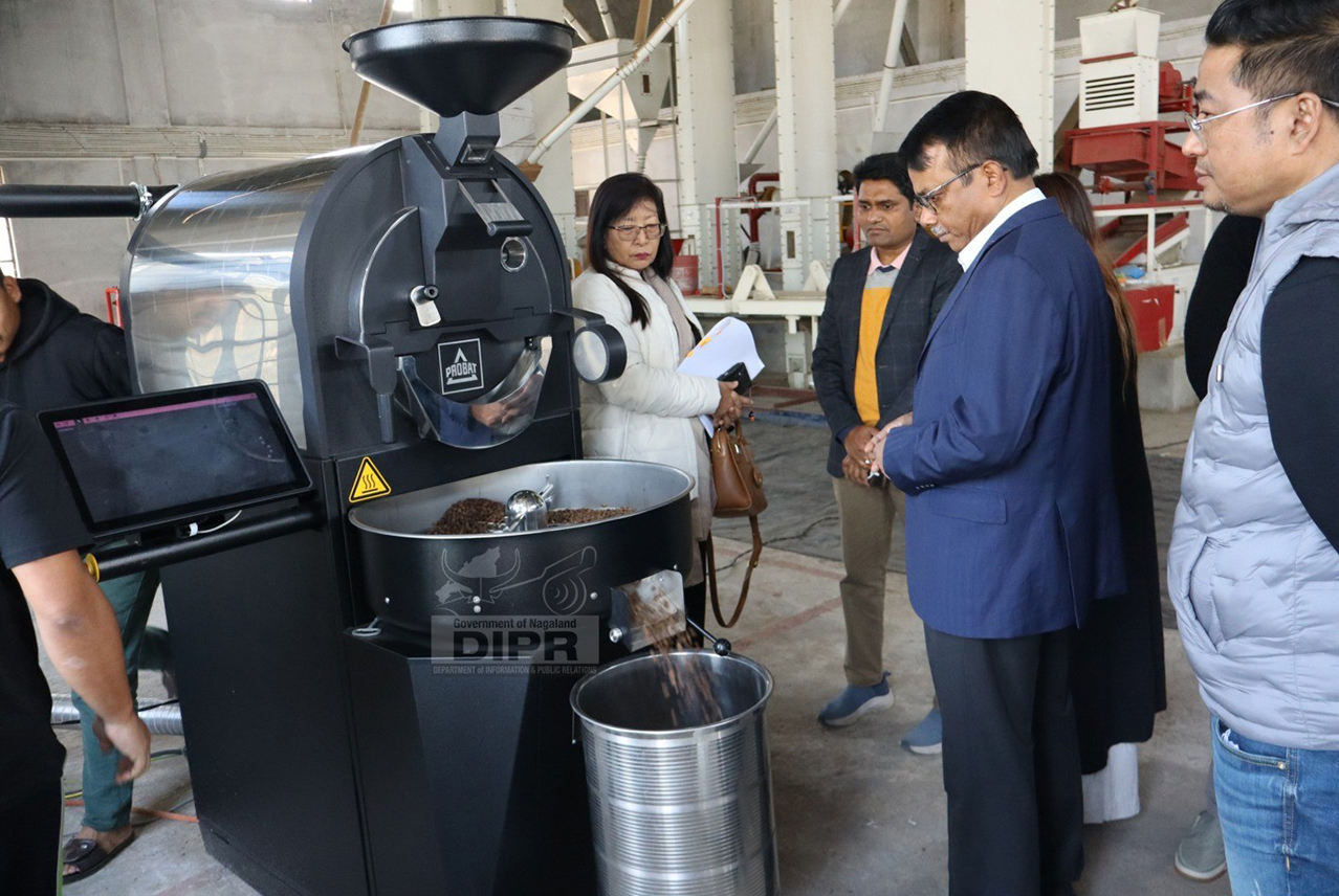 Joint Secretary, DoNER, Angshuman Dey inspecting the NEC-funded coffee value-addition project, including roasting machine and entrepreneurship training at Thiluxu village, Dimapur on January 18