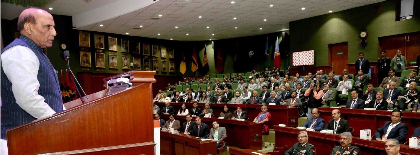 The Union Minister for Defence addressing at the Armed Forces Flag Day CSR Conclave, organised by Department of Ex-Servicemen Welfare in New Delhi on 29 November. (Credit: PIB New Delhi)